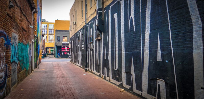 特区居民住在小巷希望看到更多确定的壁画,路灯,树木,根据一项新调查。四分之一的居民也认为小巷应该使用限制,因为大多数人看到小巷被汽车通过。(Nena Perry-Brown / UrbanTurf)