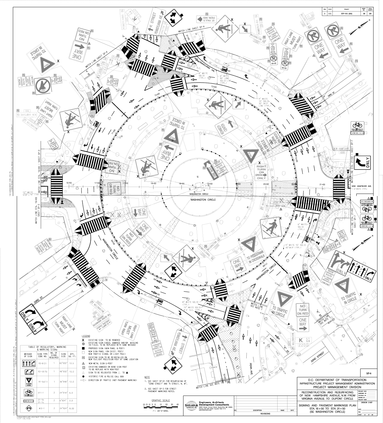 现在,只有4人行横道的圆,每个穿越至少3车道的交通。他们两个,在新罕布什尔州大道,转储行人在一个小三角形,然后他们不得不穿过一个方向的新罕布什尔州继续在任何方向。