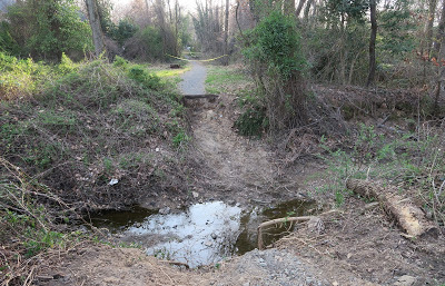 人们企图跨越小溪之间穆雷巷和洛克伍德巷现在面对胶合板董事会和绳索封锁访问溪,标志着说“安全原因损坏的桥已被删除,“和一个注释梅森区主管彭妮恶心。
