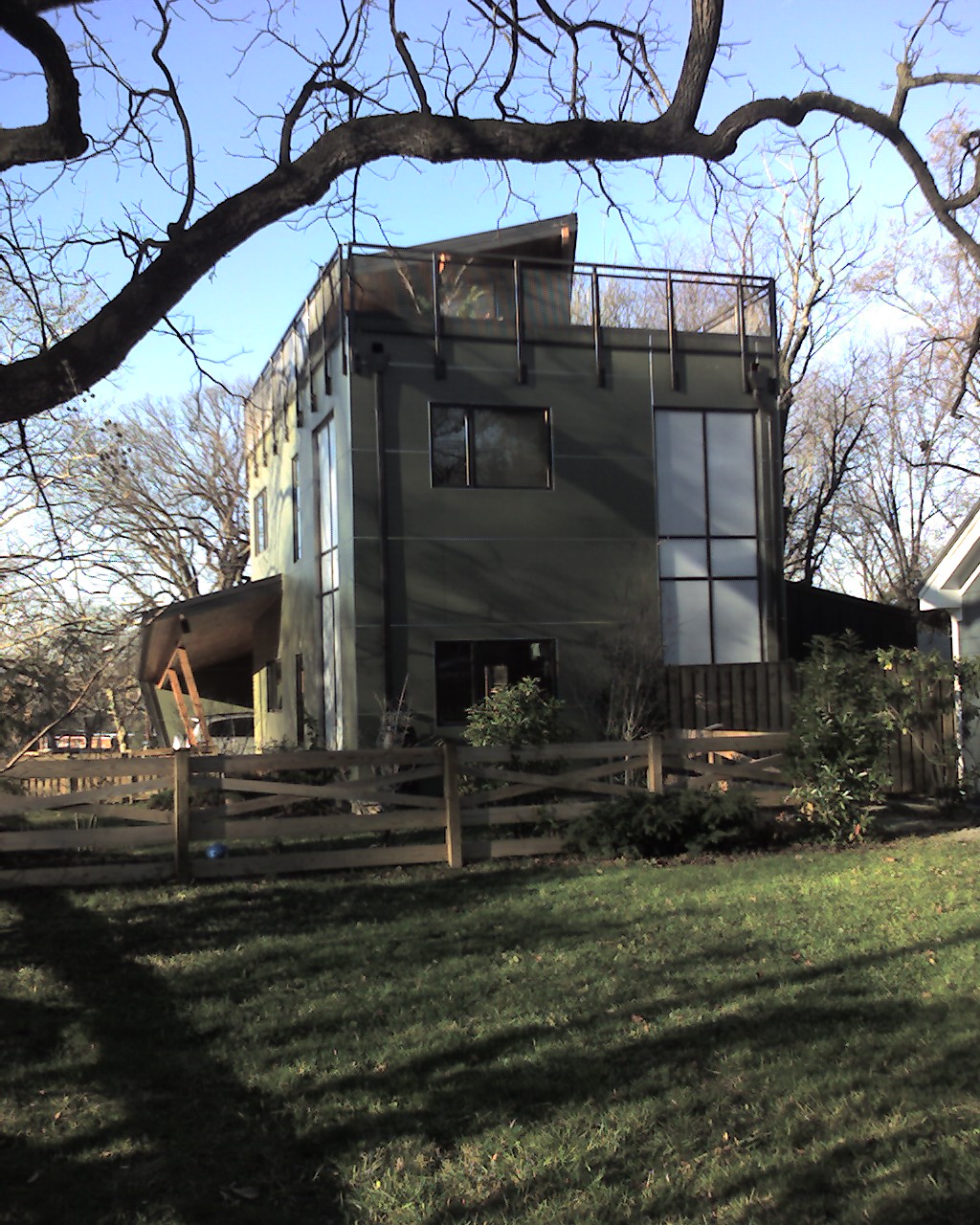 这个家是建立在一个奇形怪状的很多,没有建立在之前。由于其不寻常的三角形状和体积小,它需要分区豁免对挫折和其他要求。作为整个项目的一部分,盾牌翻新隔壁的农舍,女士还将显著的绿色实践以获得批准从县开发这个很多。