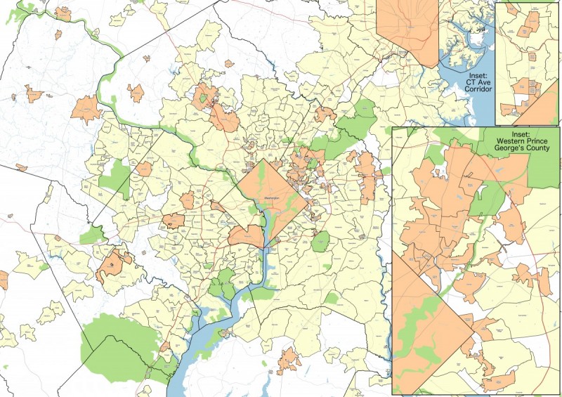 尤其明显的郊区社区开发为有轨电车沿着罗德岛州大道有轨电车和Bladensburg路/“Gretta线”有轨电车乔治王子县。许多城镇US-1和地区边境乔治王子郡有小群体和中产阶级的收入相对较低,既有助于很小的税基。
