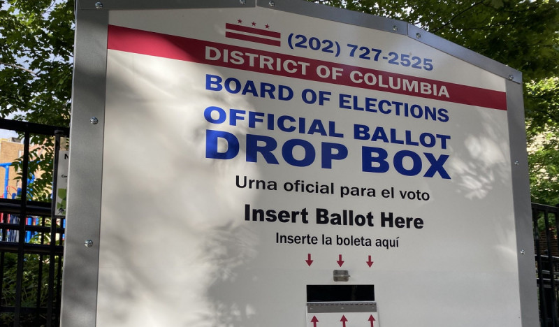 50下降投票箱,直流选民可以减少周一邮寄选票了。5盒计划周四开放。所有的盒子将选民在选举日直到晚上8点。(马丁Austermuhle / DCist)